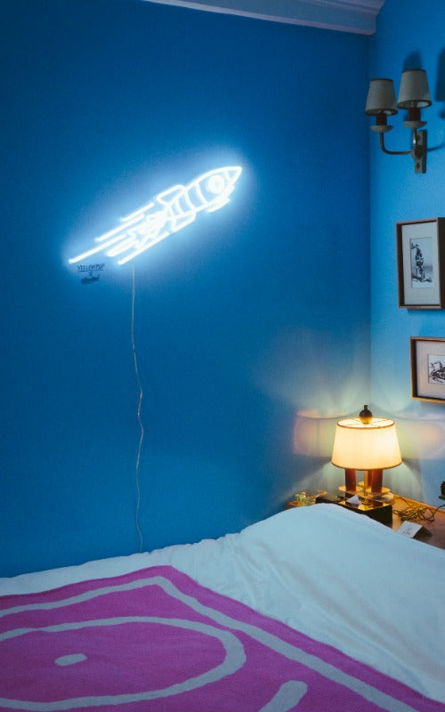 Known for his inimitable graffiti and pioneering work in nightlife and hospitality, André Saraiva’s universe is full of light and full of play. From the mischievous grin of Mr. A, to his interpretation of the yellowpop rocket, we knew immediately that the collaboration would be a hit. His imagery and his attitude were made for neon. We’ve always been huge fans of Andre’s work, and when we first started collaborating with artists, he instantly came to mind. For us, working with an icon like André and bringing his art to life in neon is what yellowpop is all about.