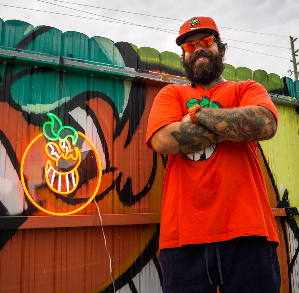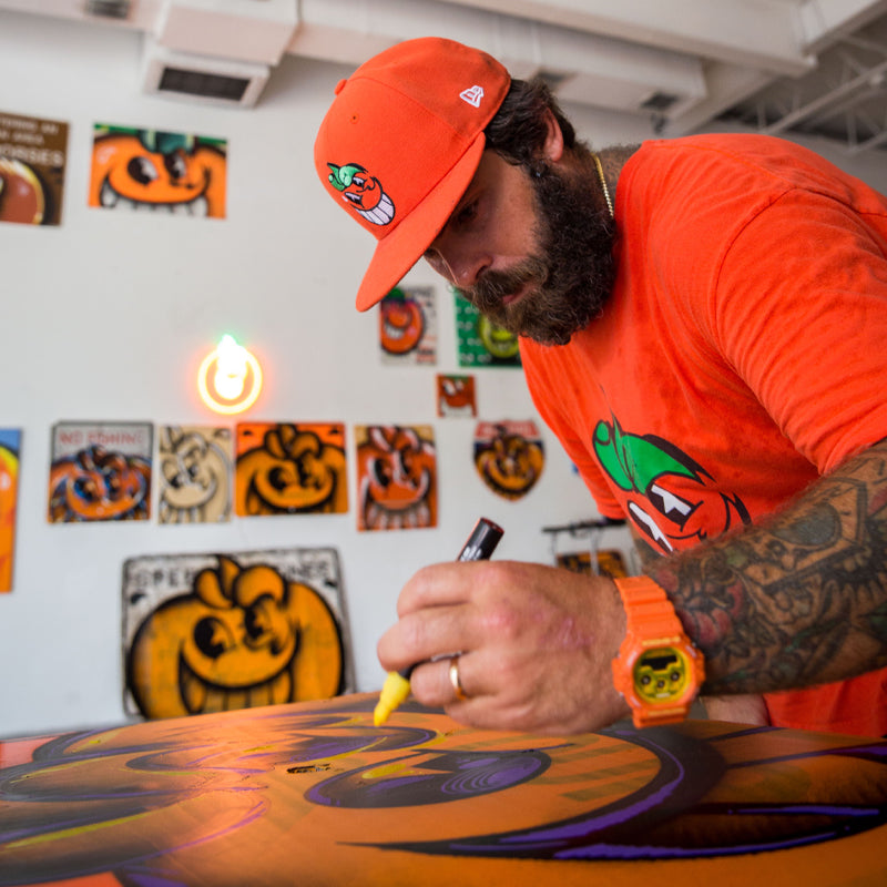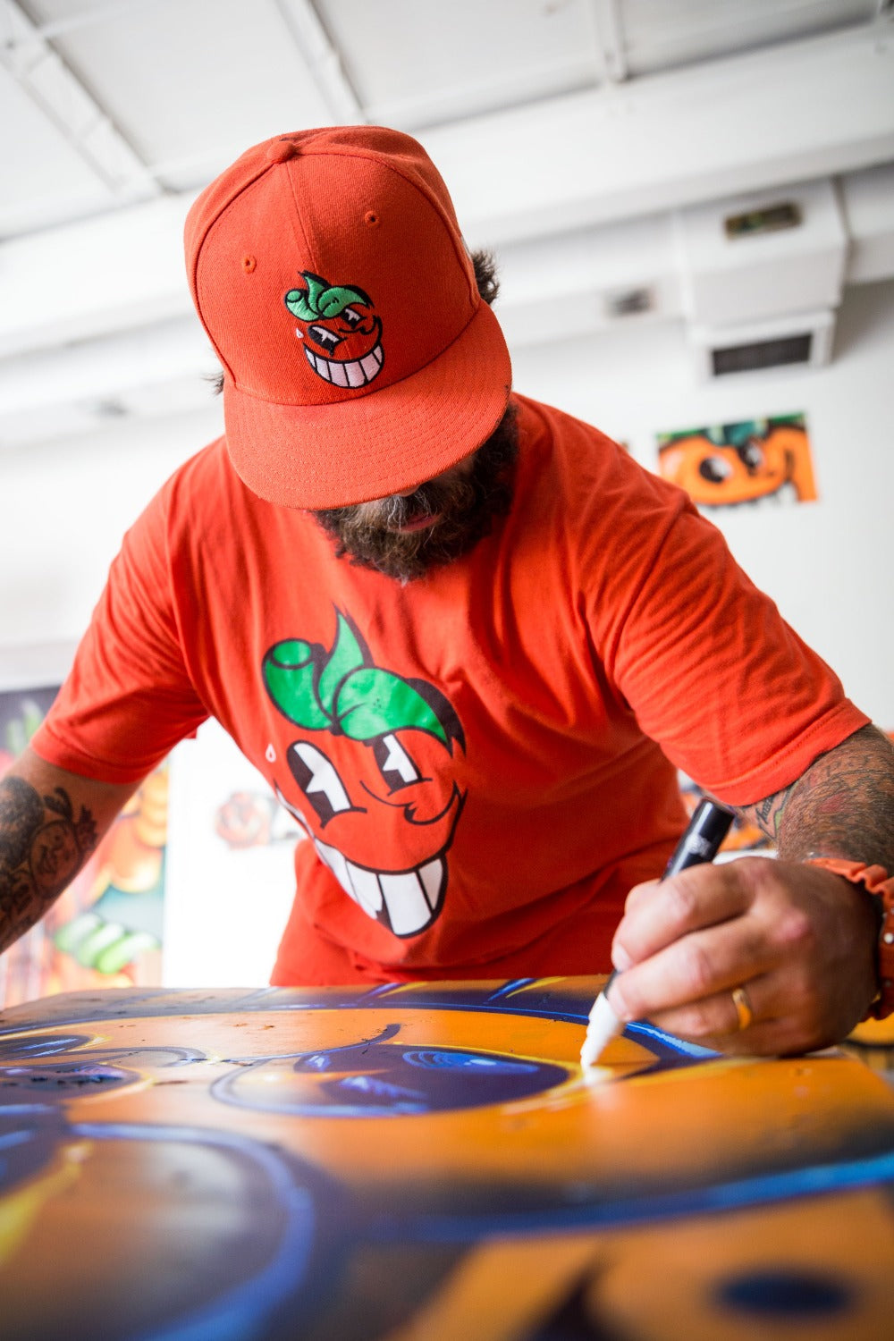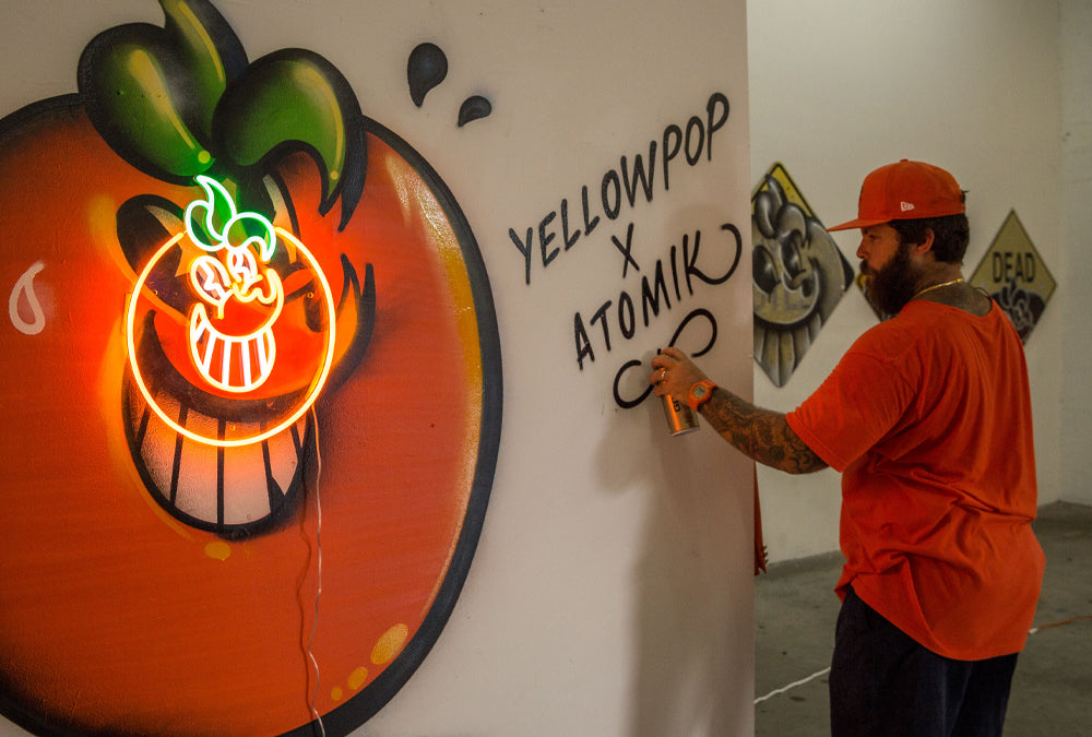 ATOMIK is a 100 percent Miami artist. Trained in graphic design, he is a big name in the Miami art scene. While growing up in the emerging Miami graffiti scene of the 80s, ATOMIK witnessed for himself at a young age what would later become his profession. Famous for his iconic orange character which emerged as a response to the demolition of the Miami Orange Bowl, the artist also marks the walls of Miami with his sleek hand-styles, graffiti, and lettering. His unmistakable orange character has been placed all over the world bringing a piece of Miami to places such as Chile, Peru, Colombia, Brazil, Argentina, Mexico, Holland, Germany, Italy, Spain, England, Australia, Korea, and Thailand.