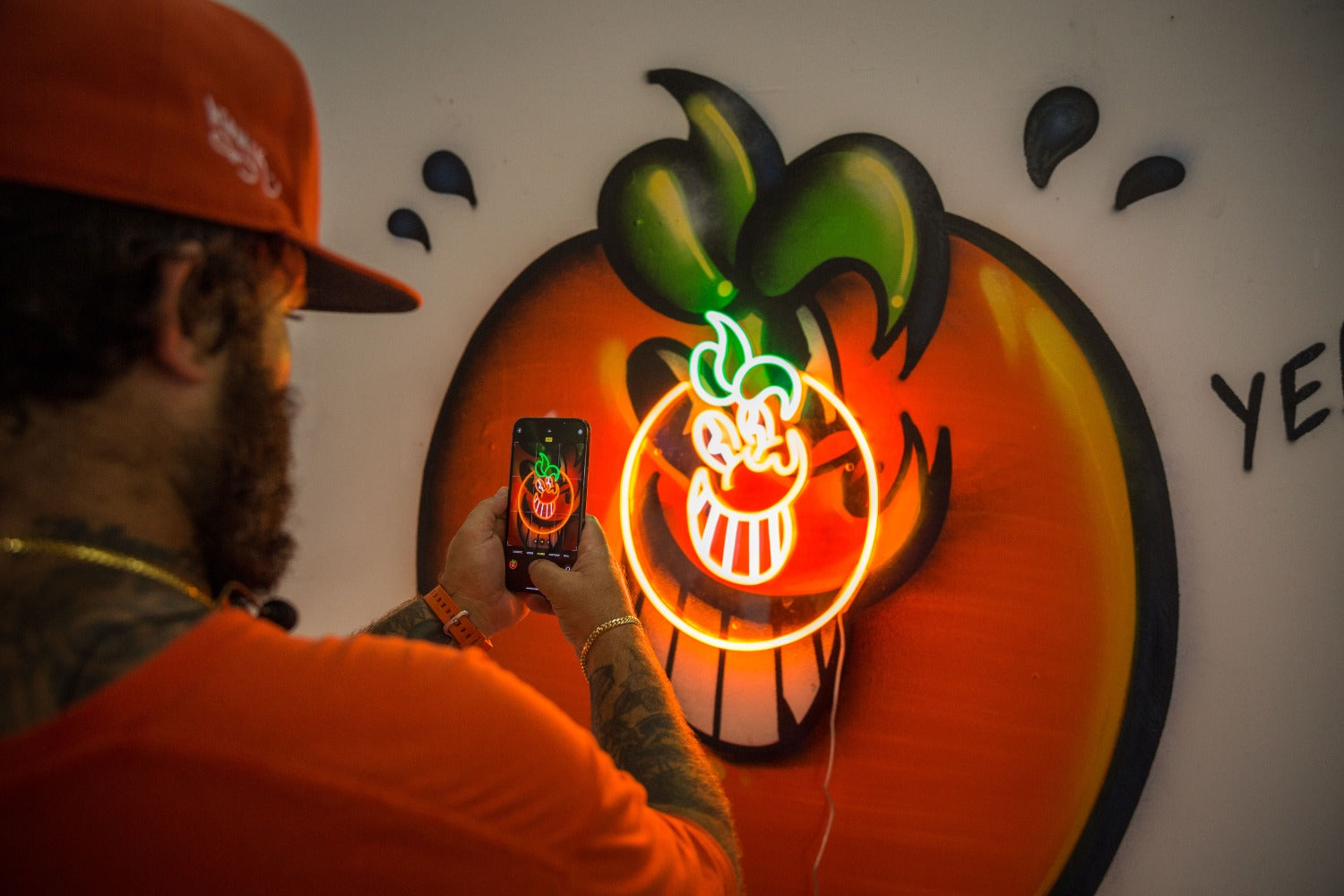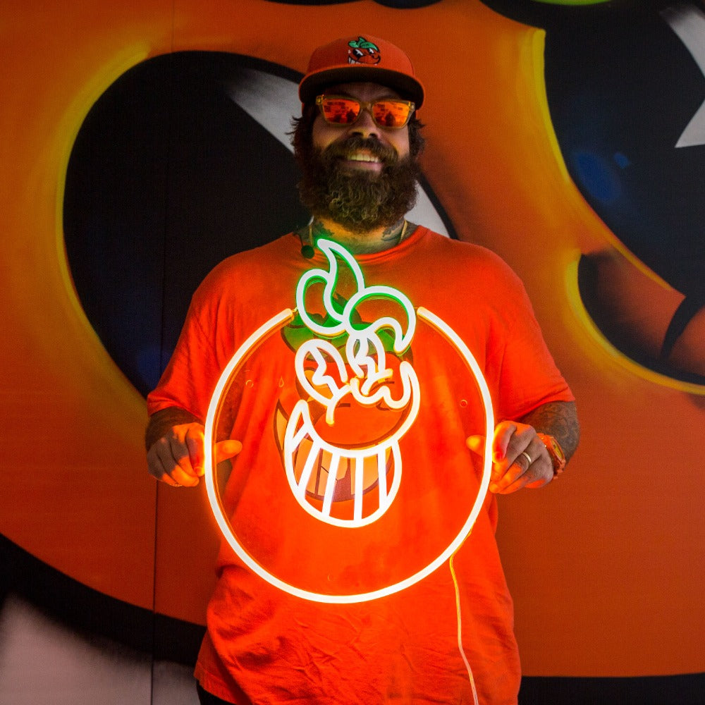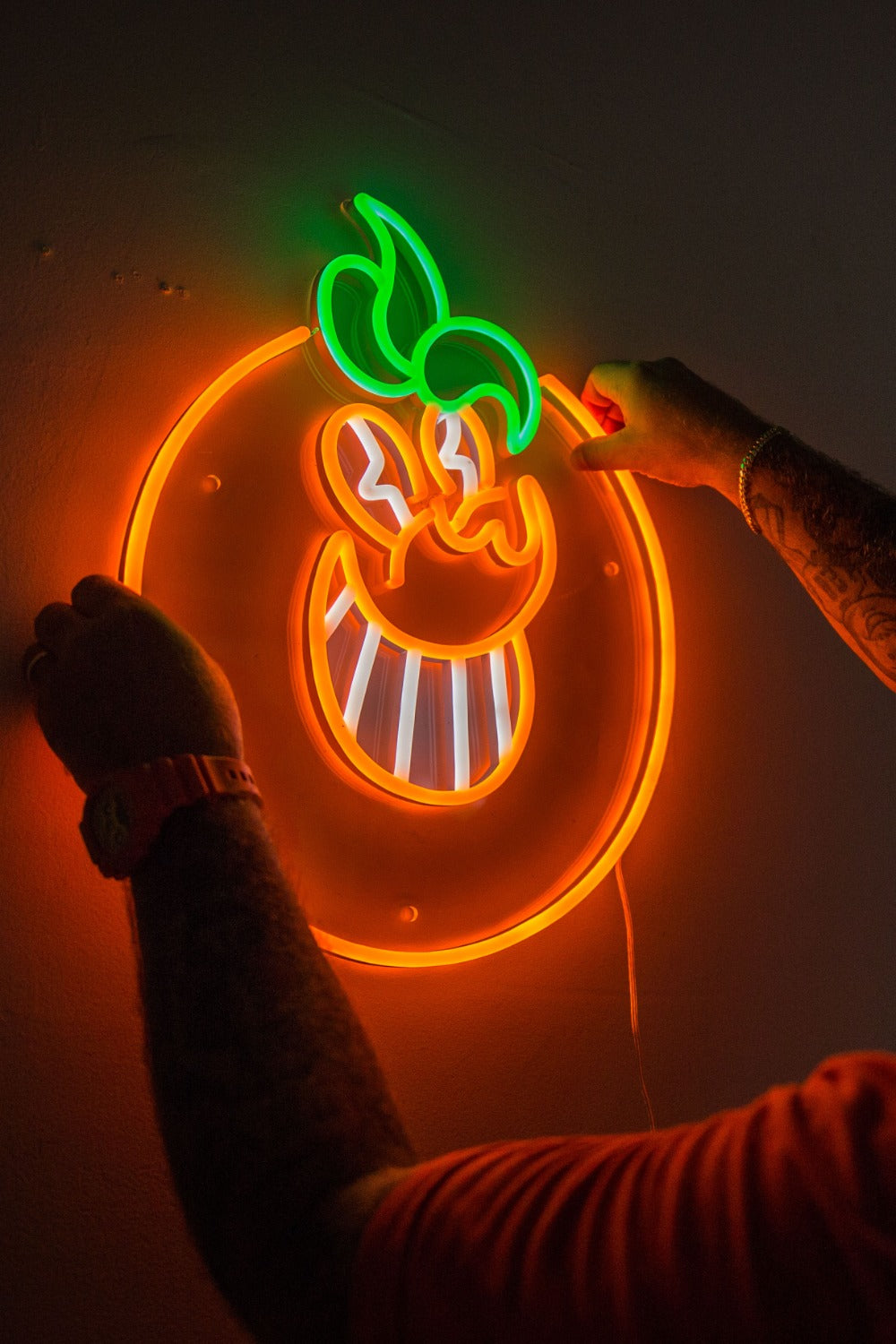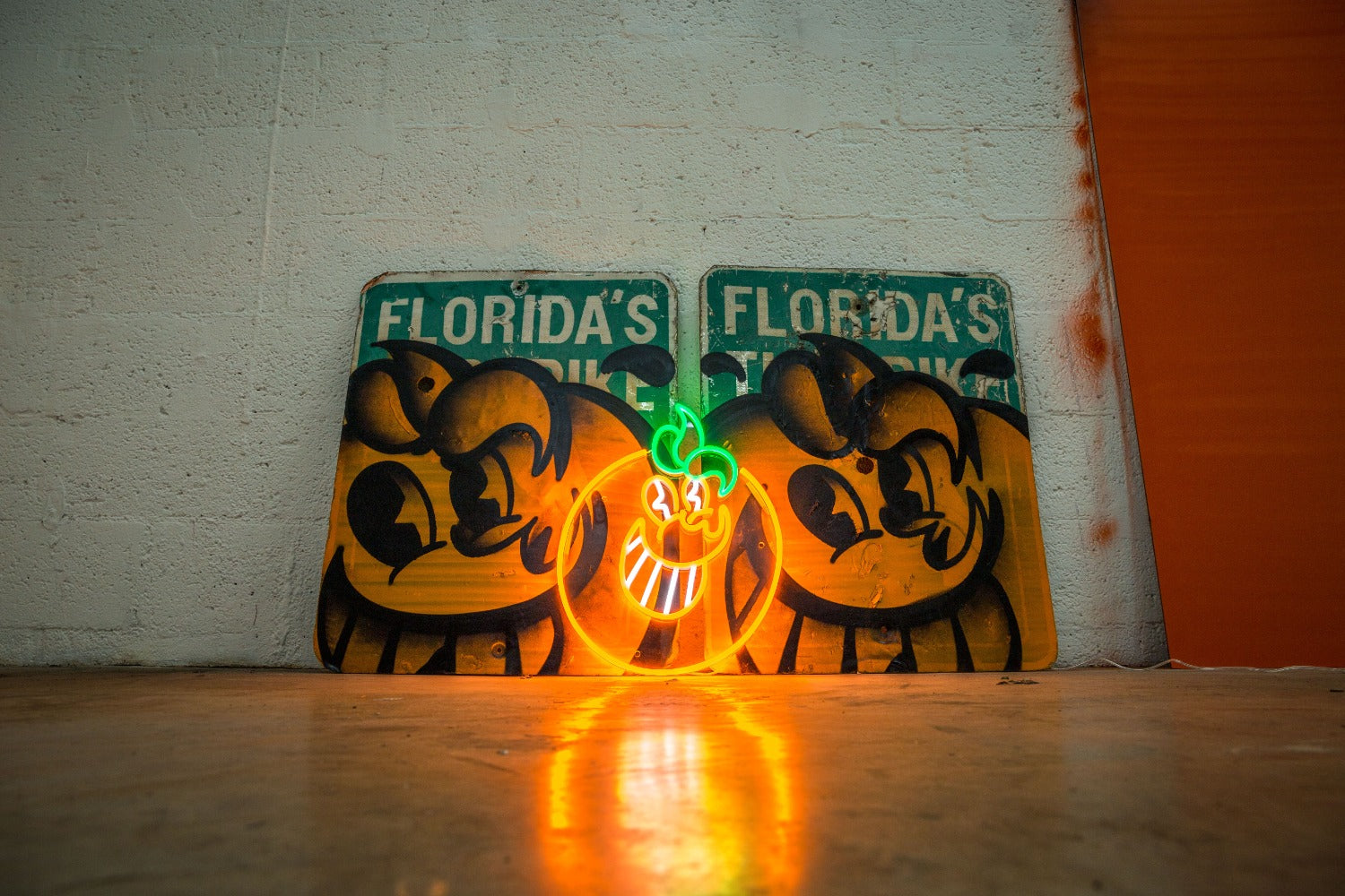 This LED neon sign showcases the iconic orange character that has captured hearts and minds in Miami! Art meets neon, mixing creativity and brilliance.