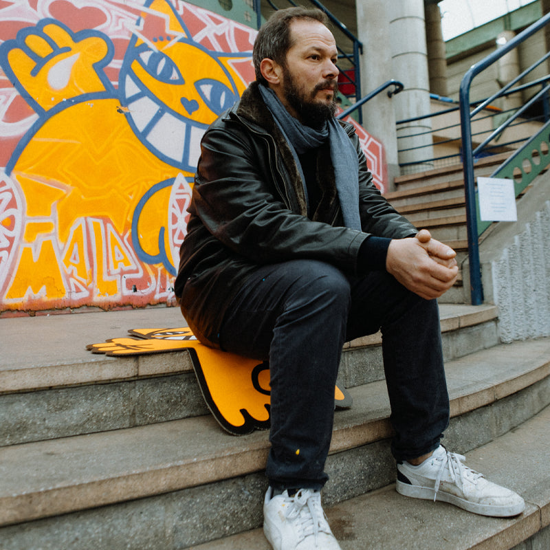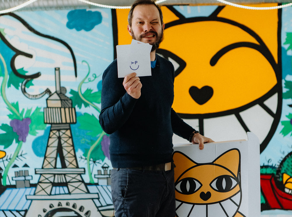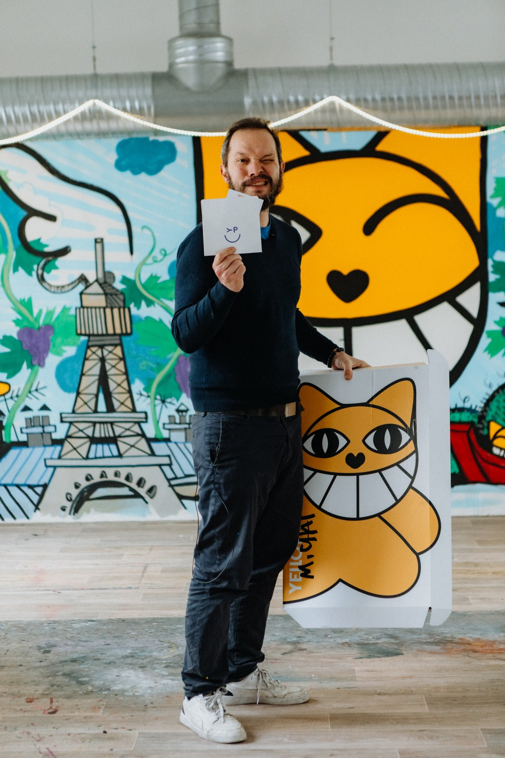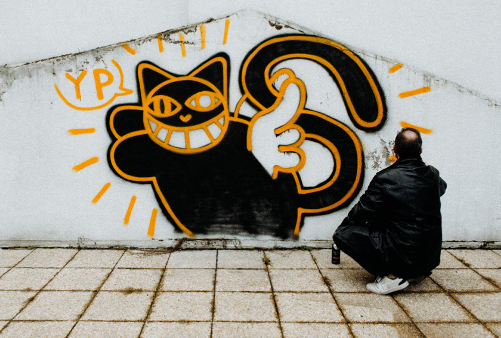 The Franco-Swiss artist behind the infamous M. CHAT, began his street-art career with graffiti works at his local high school. He studied for a time at Beaux-Arts before going on to introduce the world to M. CHAT in 1997, on the walls of OrlΓ©ans. Thoma was at the head of the street art movement of the early 2000s with his iconic M. CHAT character. Since then, he has gone on to paint murals on the walls of Paris, New York, Senegal, Brazil, and many more. His iconic character has appeared in museums, on t-shirts, and even in a coloring book. Thoma Vuille is one of Franceβs most famous street artists and his M. CHAT has become a cultural icon, in France and around the world.