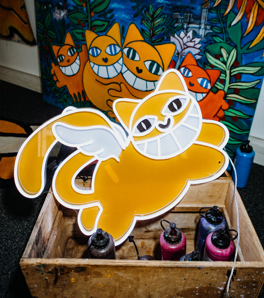 These cats are running fast, so act quickly to snatch up your limited-edition neon sign. This run of 150 editions means youβll own a truly rare work by Thoma Vuille, the world-renowned street artist.