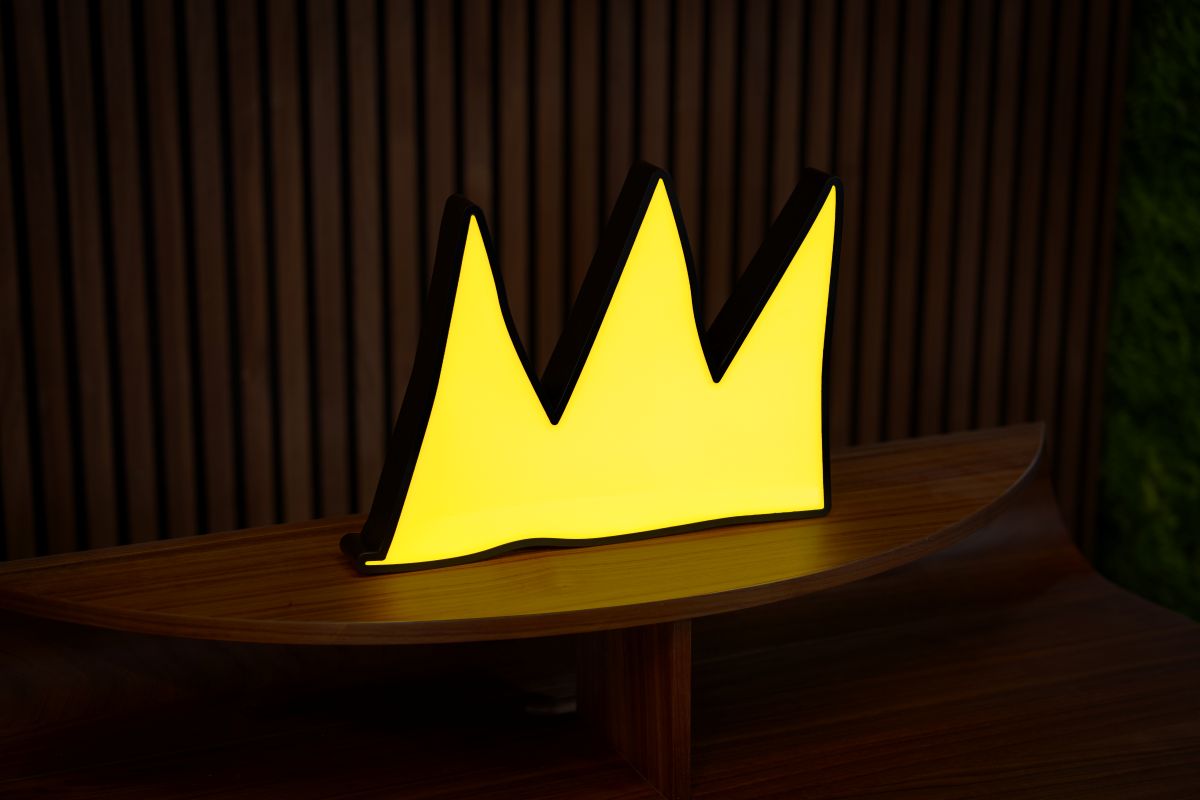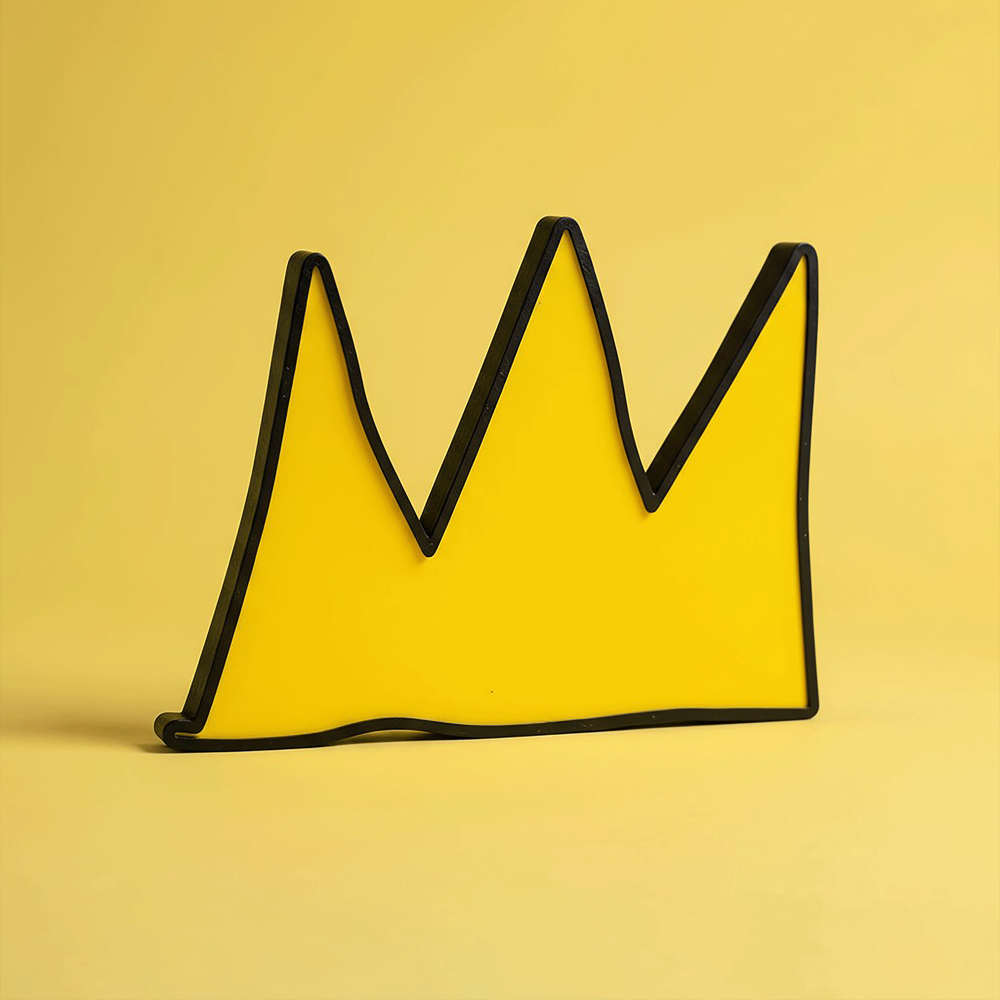 Bring Jean-Michel Basquiat’s iconic Crown to life in vibrant light. A bold statement piece, this PopBox celebrates rebellion, creativity, and the raw energy of street art.