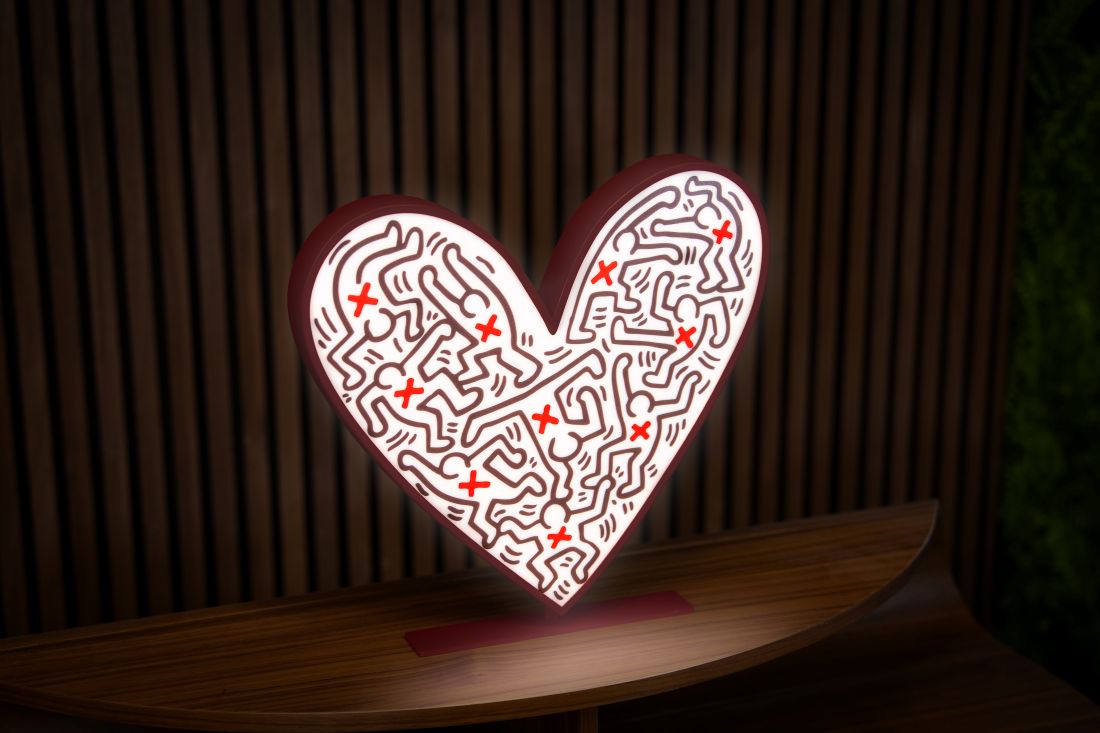 Keith Haring’s iconic heart radiates joy and connection in glowing light. This PopBox captures his signature energy and playful spirit, transforming your space into a celebration of love, art, and movement.