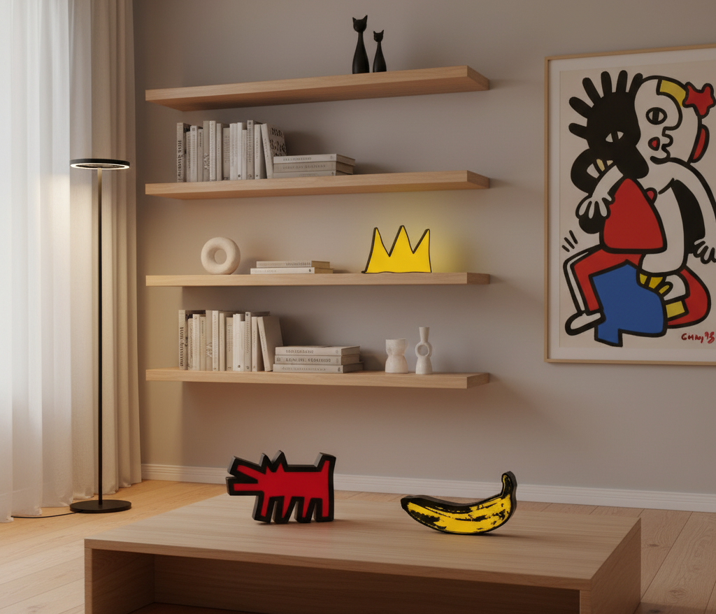 Fusing art and innovation, it reimagines the works of Warhol, Haring, and Basquiat as luminous design pieces that bring gallery-worthy brilliance into your space.