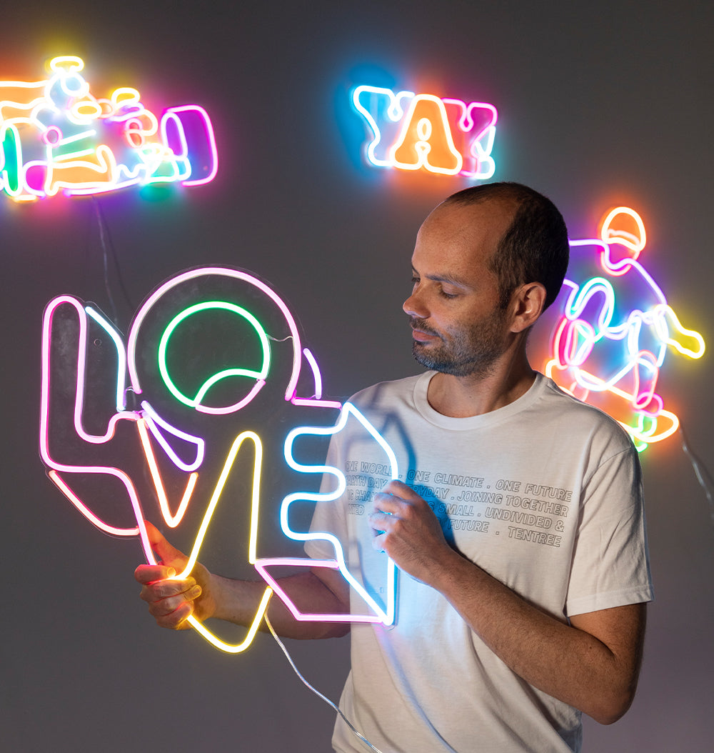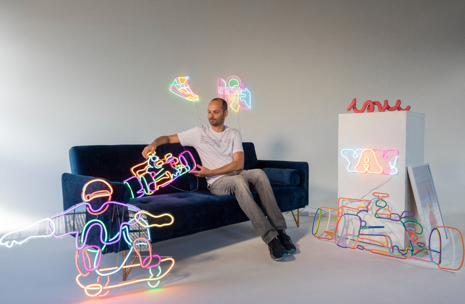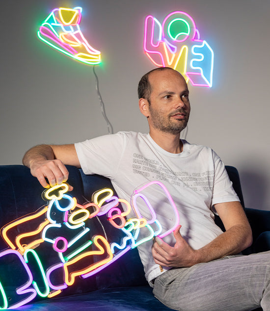 Dive with us into Yoni's fun and colorful world and discover his incredible designs revisited in neon LEDs.