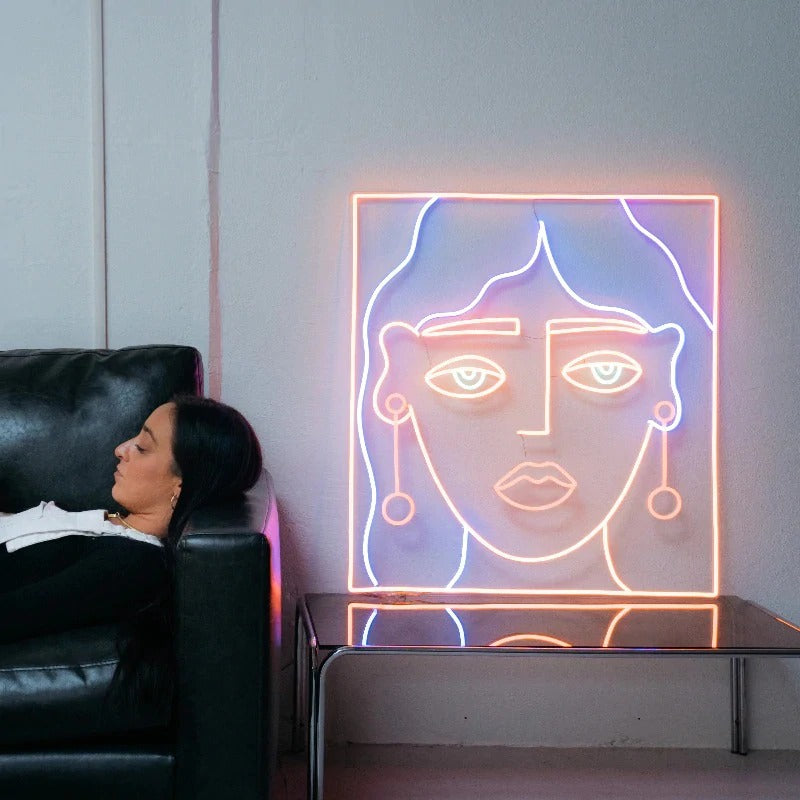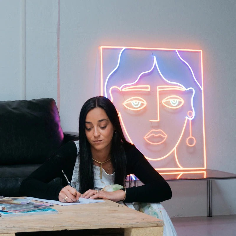 buy her neonHer signature style always takes the viewer into another world, one full of beauty and harmony. It was these fluid sketches and paintings that Lea wanted to create in neon. Her exclusive neon sign features a portrait of a girl with a mix of colors that reference her style of painting