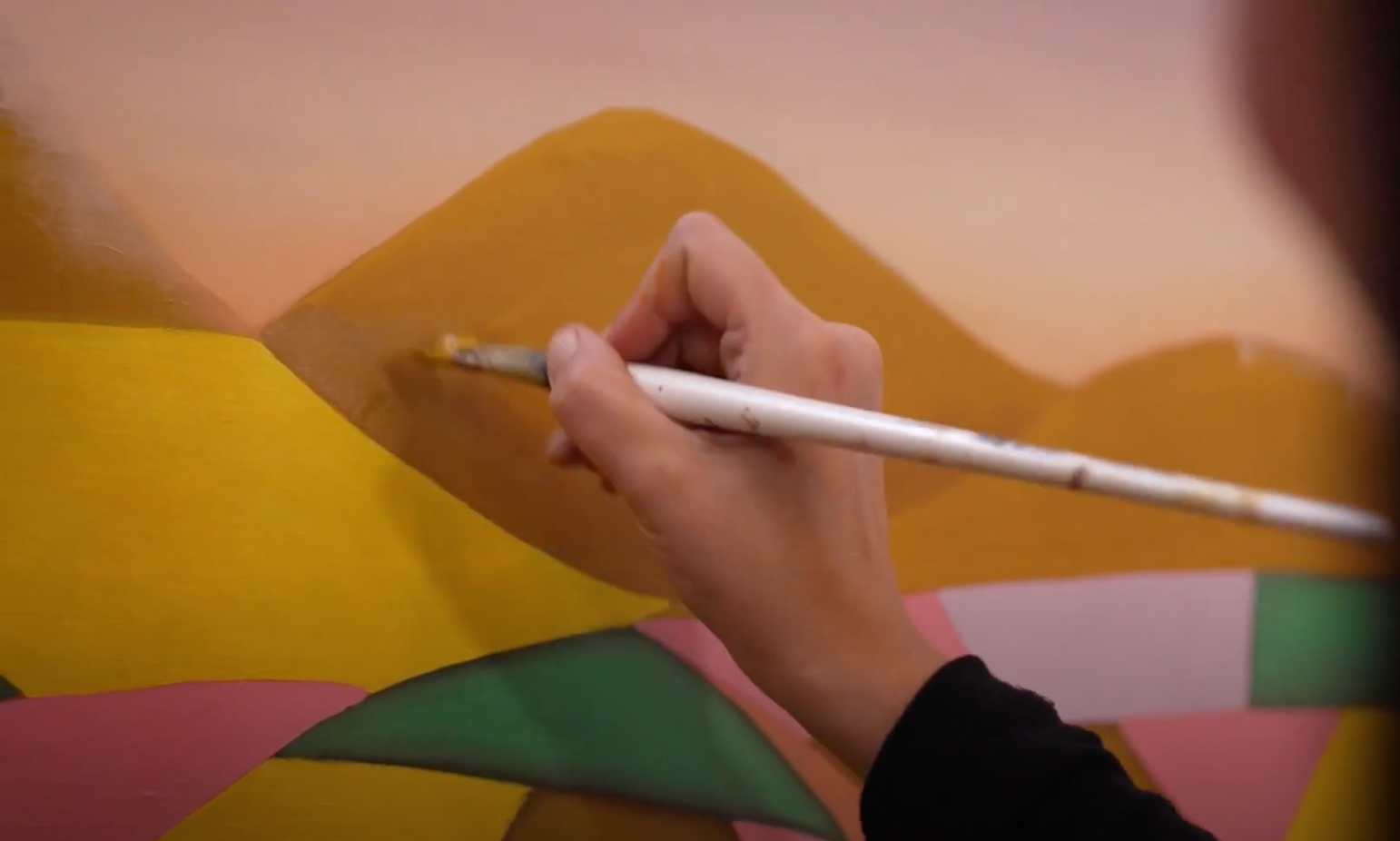 Leaβs studio is a minimal, calming space with a few vintage pieces (she is a particular fan of the 70s). She spends most of her time in her studio and itβs become her home. Itβs the perfect backdrop to her bold and vibrant paintings using color blocking to depict a diverse range of females.